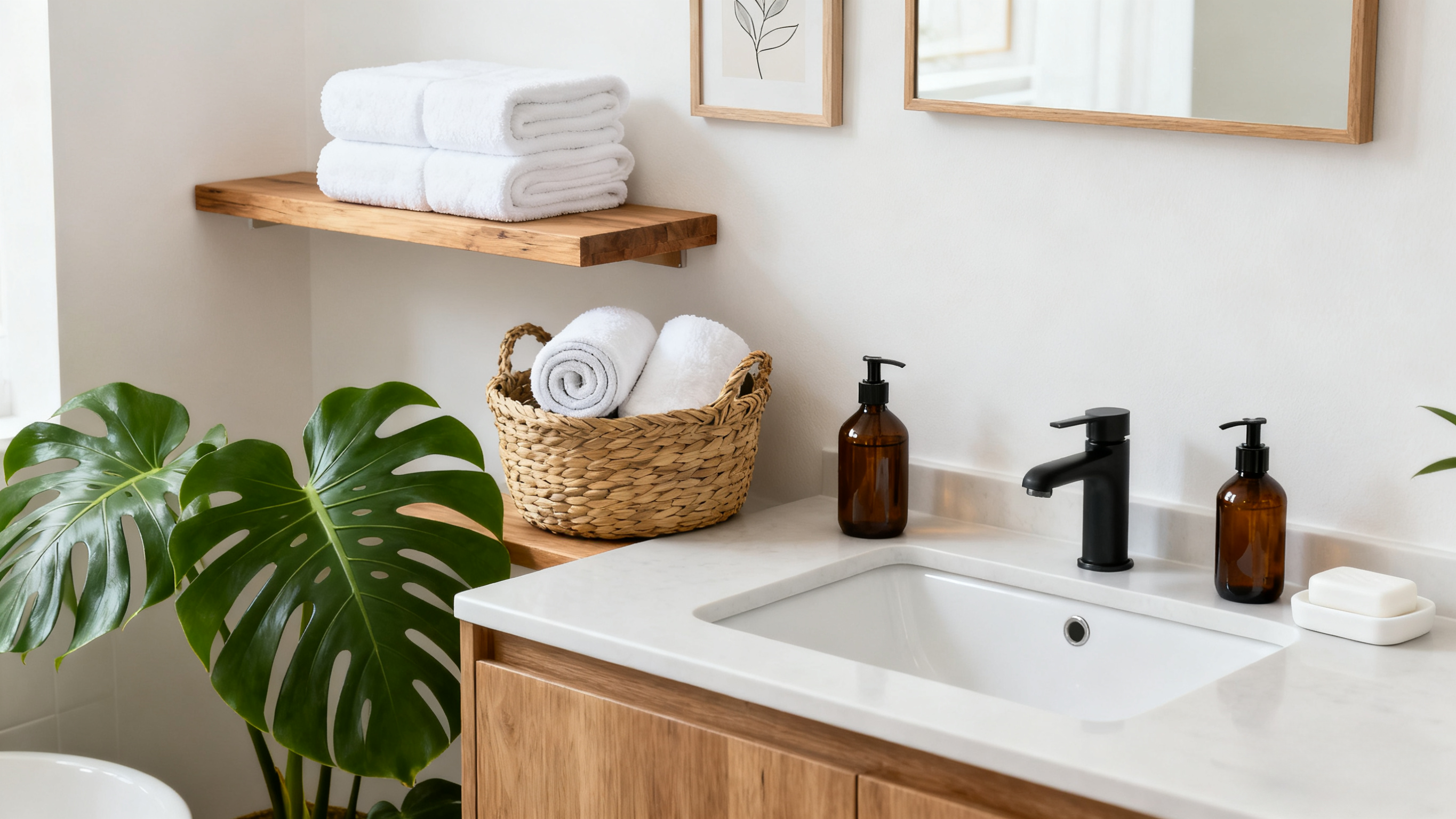 Avec des serviettes douillettes, des textures naturelles et des accents élégants
