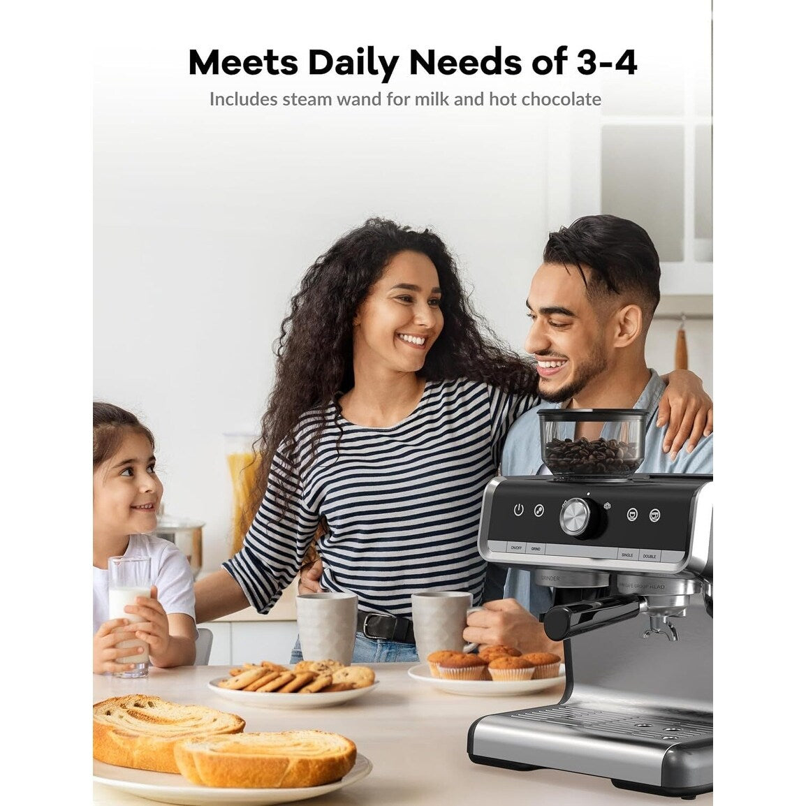 Machine à expresso semi-automatique en acier inoxydable argenté de 20 tasses avec réservoir d'eau de 0,5 gallon -
