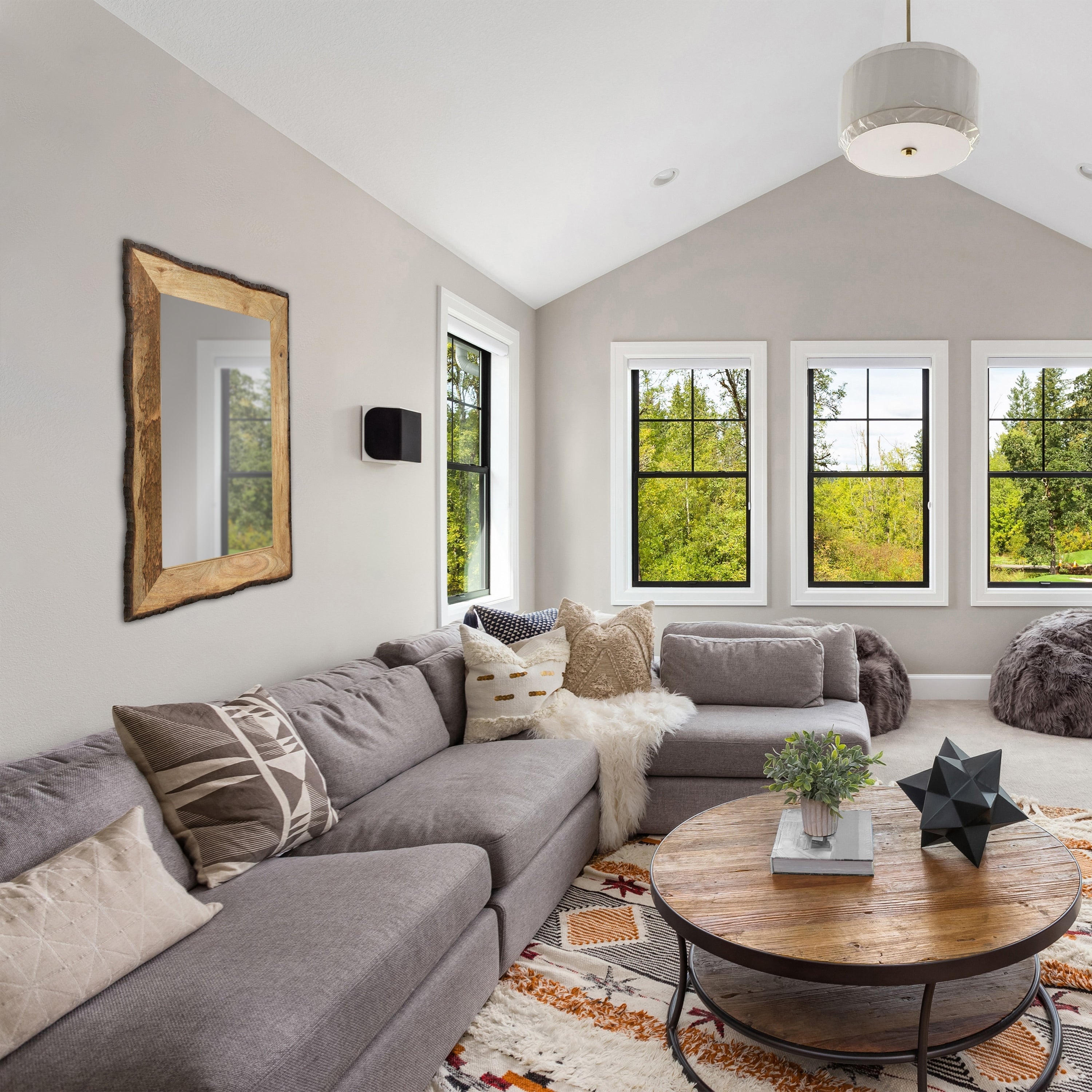 Miroir mural asymétrique en forme de pavé avec cadre en pin -
