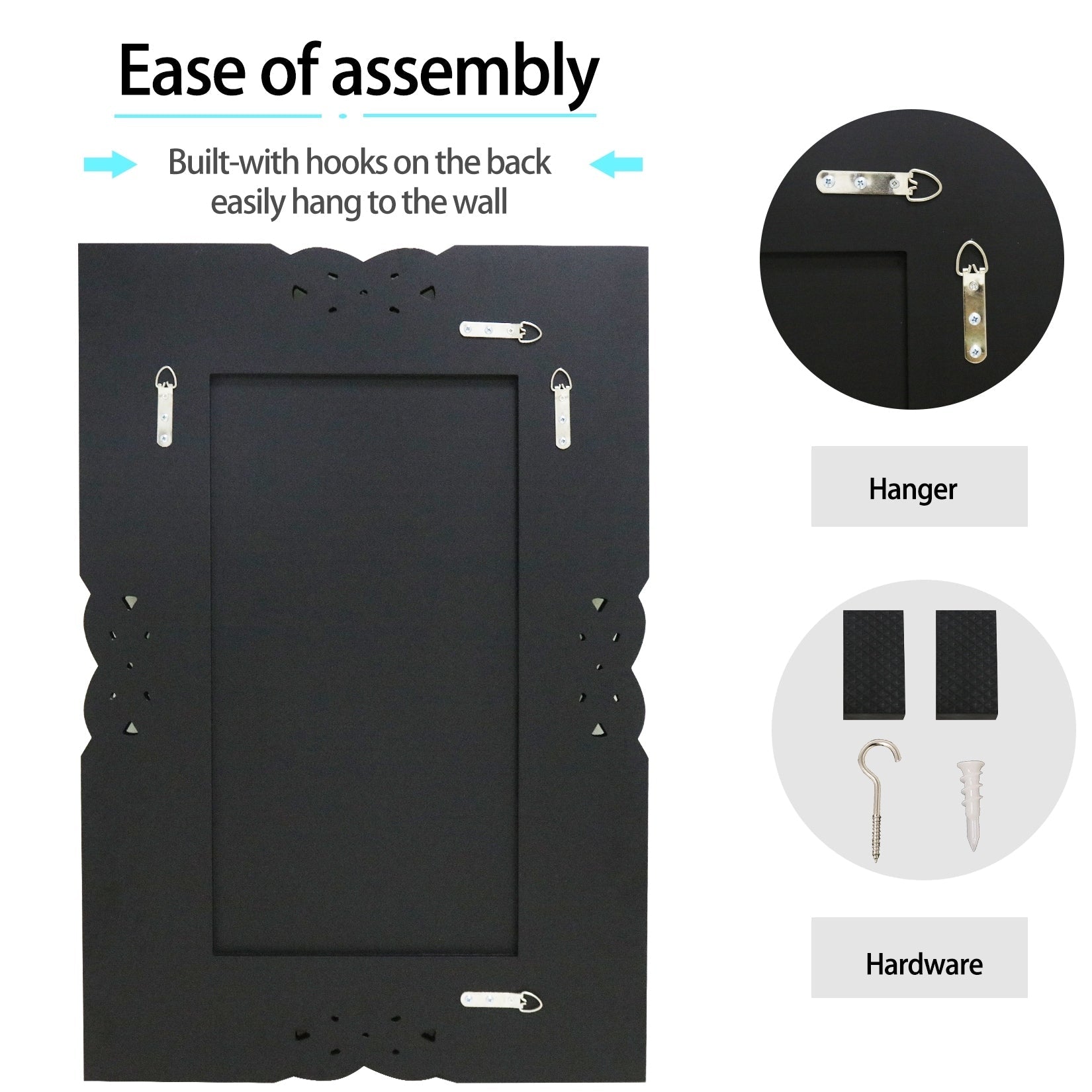 Miroir mural moderne, miroir rectangulaire avec cadre en métal, miroir de salle de bain avec miroir de courtoisie d'angle rond pour vertical/horizontal -