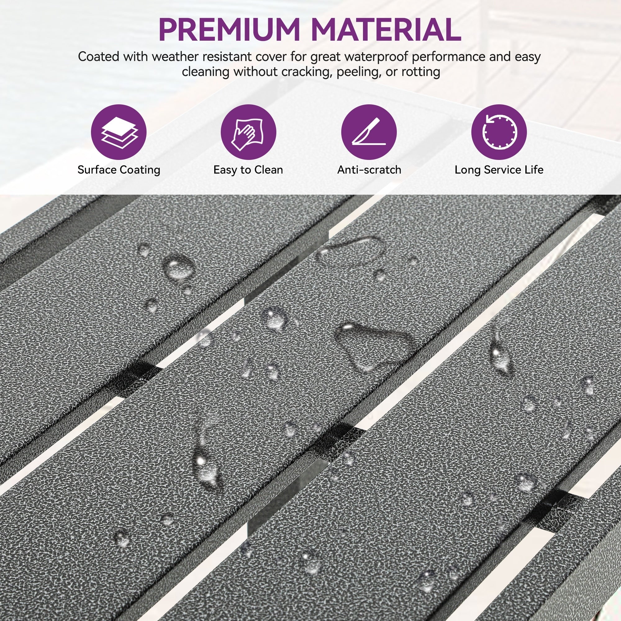 Chaises longues inclinables Polytrends Laguna en PEHD pour terrasse et piscine, toutes saisons, avec table d'appoint carrée (ensemble de 3 pièces) -