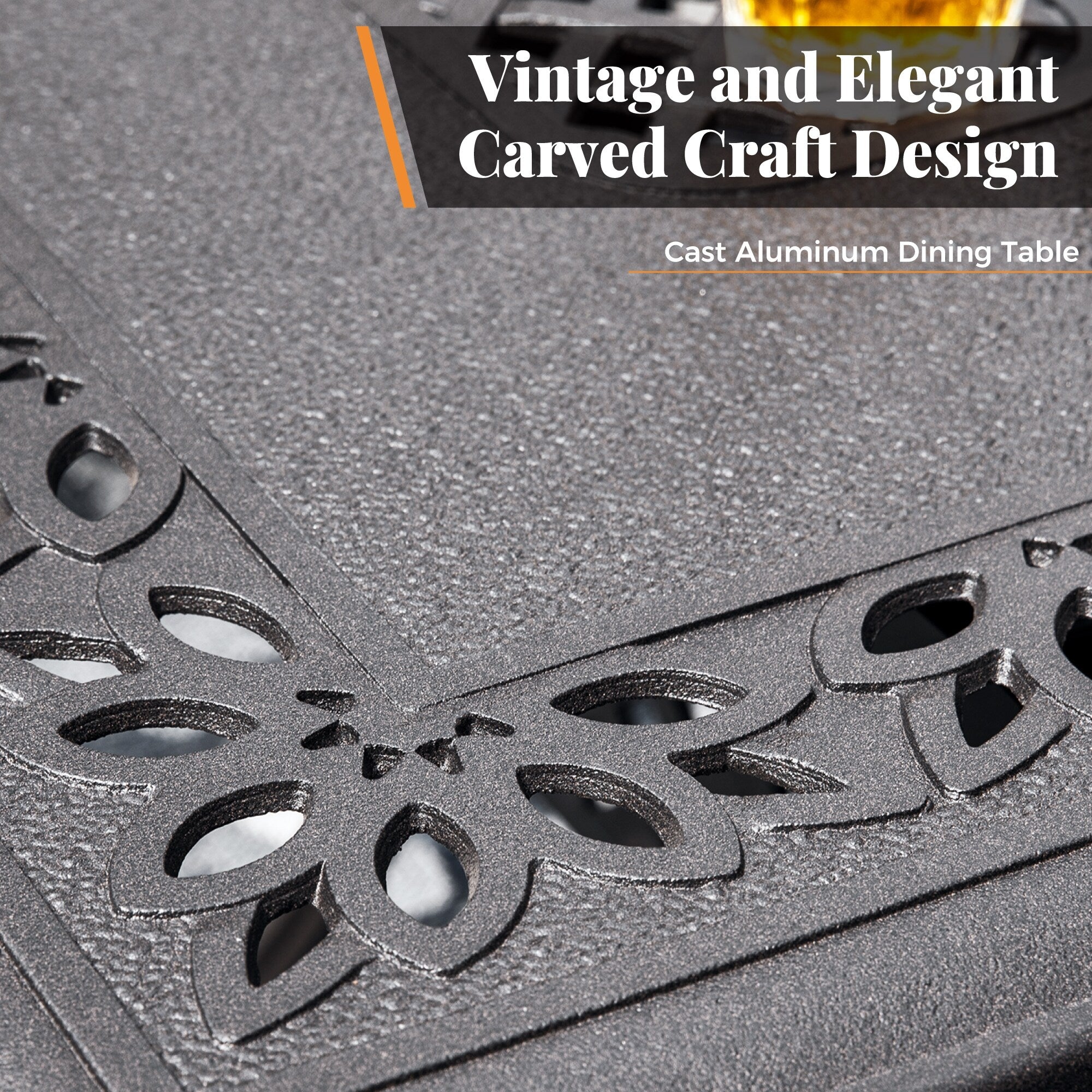 Ensemble de salle à manger de patio en aluminium moulé de 7 pièces de MAISON ARTS avec table rectangulaire extensible et 6 chaises en aluminium moulé -