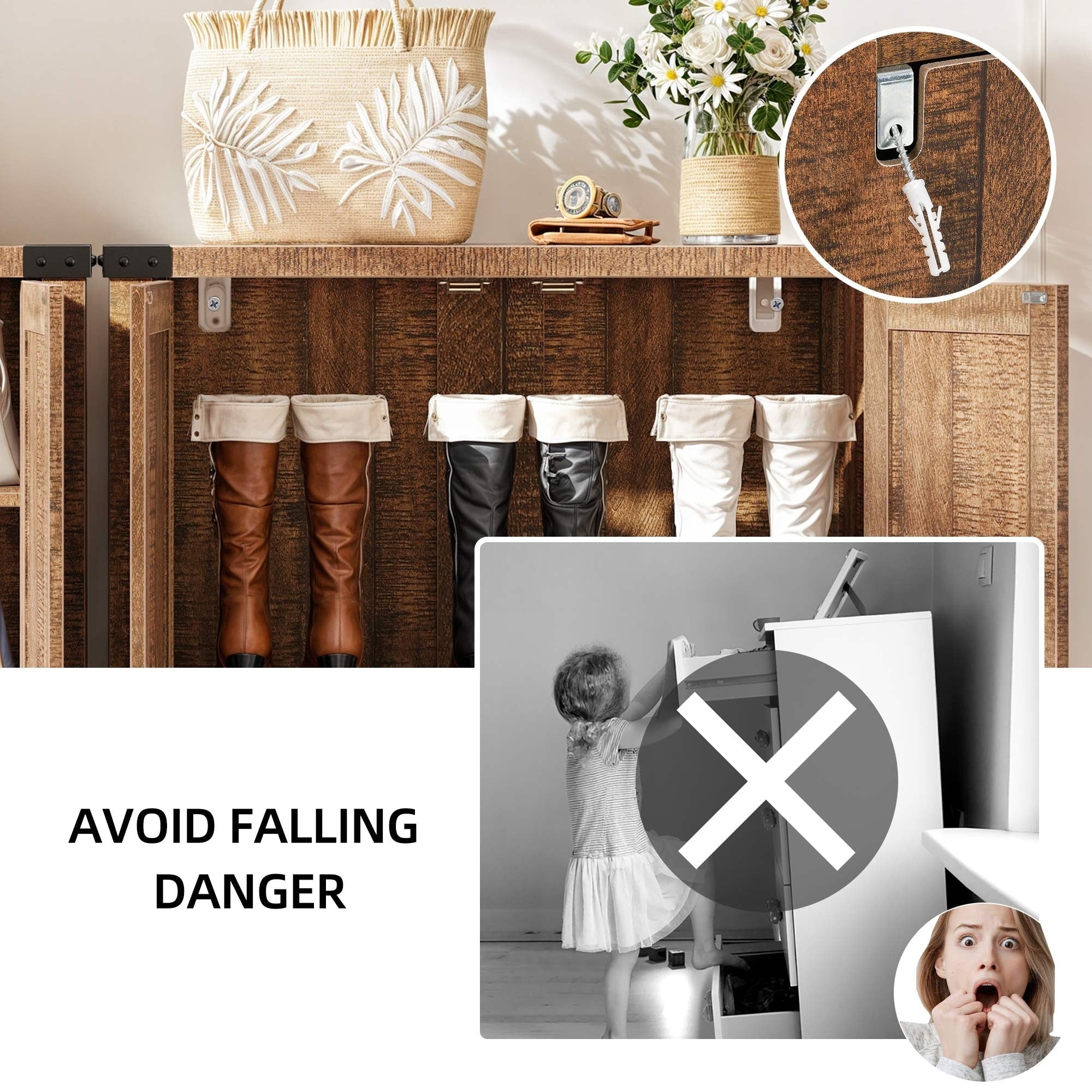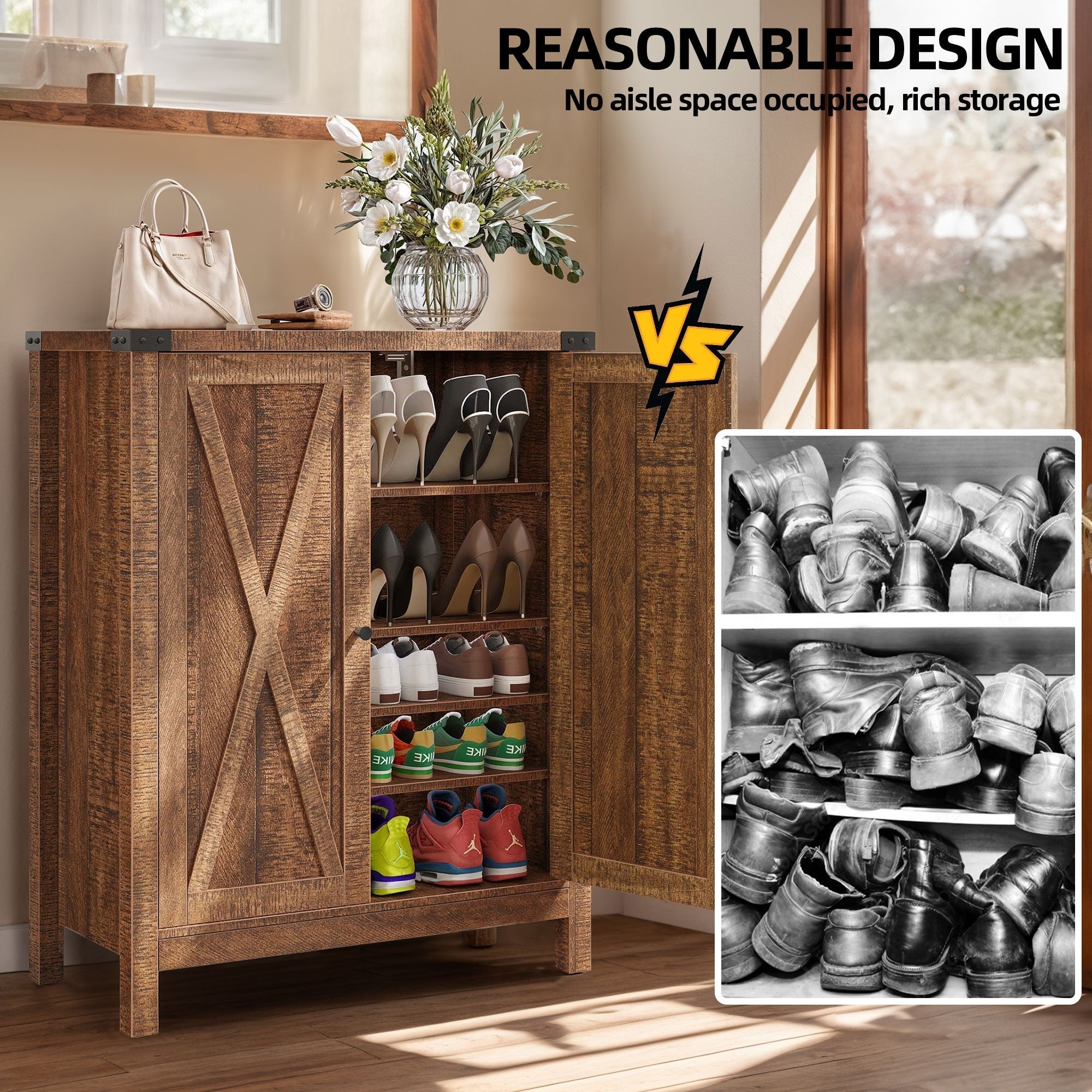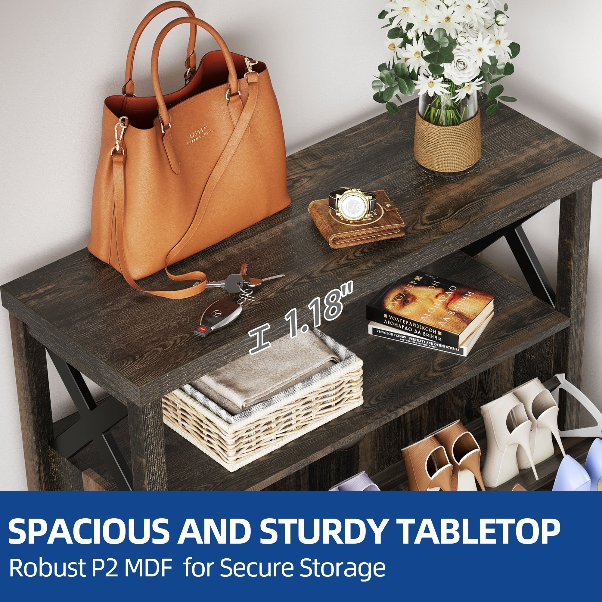 Meuble de rangement à chaussures Moasis Farmhouse avec 2 tiroirs rabattables pour 16 paires de chaussures d'entrée avec banc à chaussures -