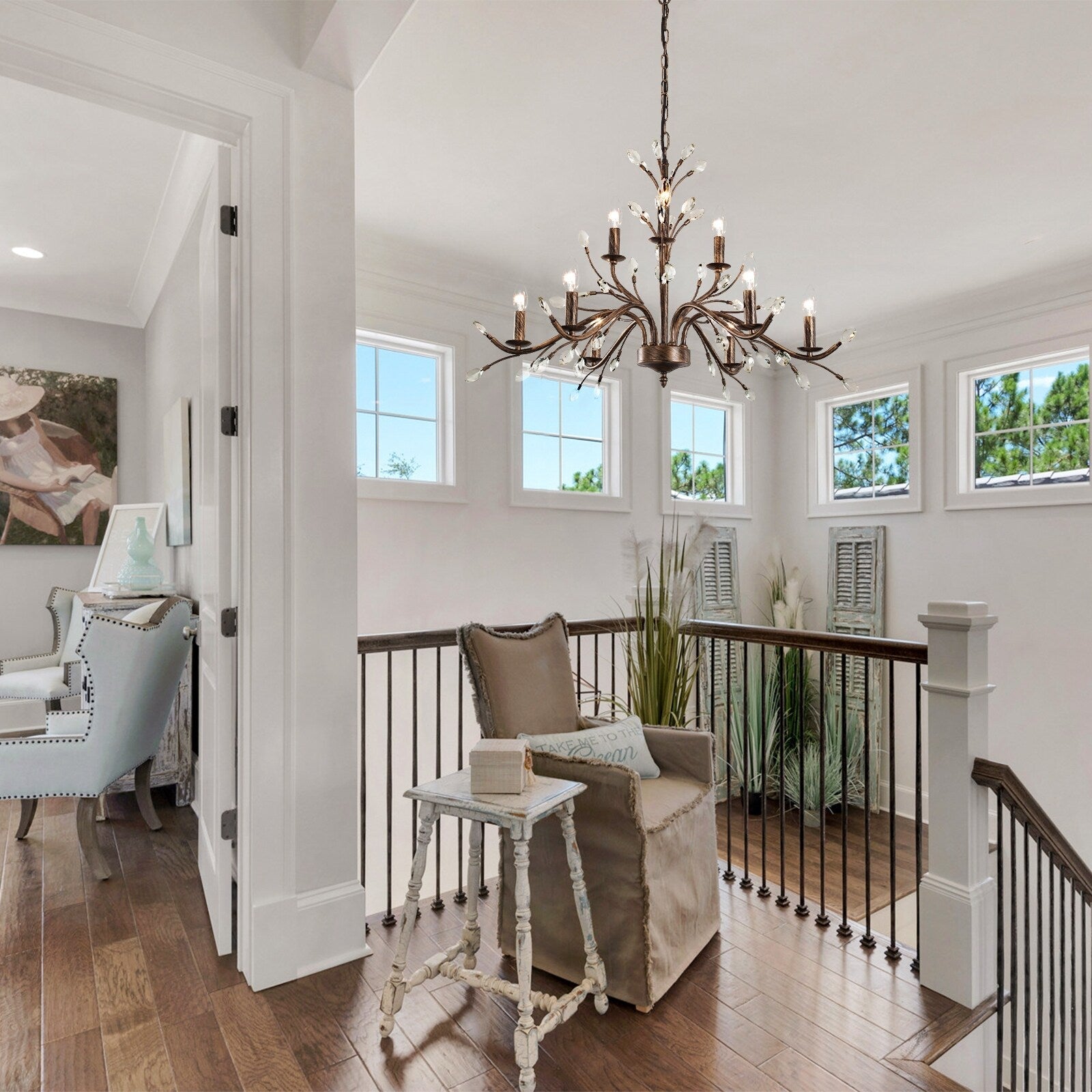 Sublimez votre intérieur avec l'élégance intemporelle de ce lustre vintage en forme de branche orné de cristaux. Avec son design complexe en forme de branche, ses lumières façon bougie et ses touches de cristal scintillantes, ce lustre en cristal apporte une touche de sophistication et de luxe à n'importe quelle pièce. Sa finition bronze antique ou nickel et ses 9/21 lumières diffusent une lumière chaleureuse et accueillante, idéale pour les grands espaces. Fabriqué en métal robuste et doté d'une chaîne réglable pour une hauteur personnalisable, ce lustre allie style et fonctionnalité. Facile à installer, il est fourni avec tout le matériel nécessaire et des instructions détaillées. Transformez votre espace avec ce magnifique lustre, parfait pour créer une ambiance chaleureuse et accueillante dans n'importe quelle pièce.
