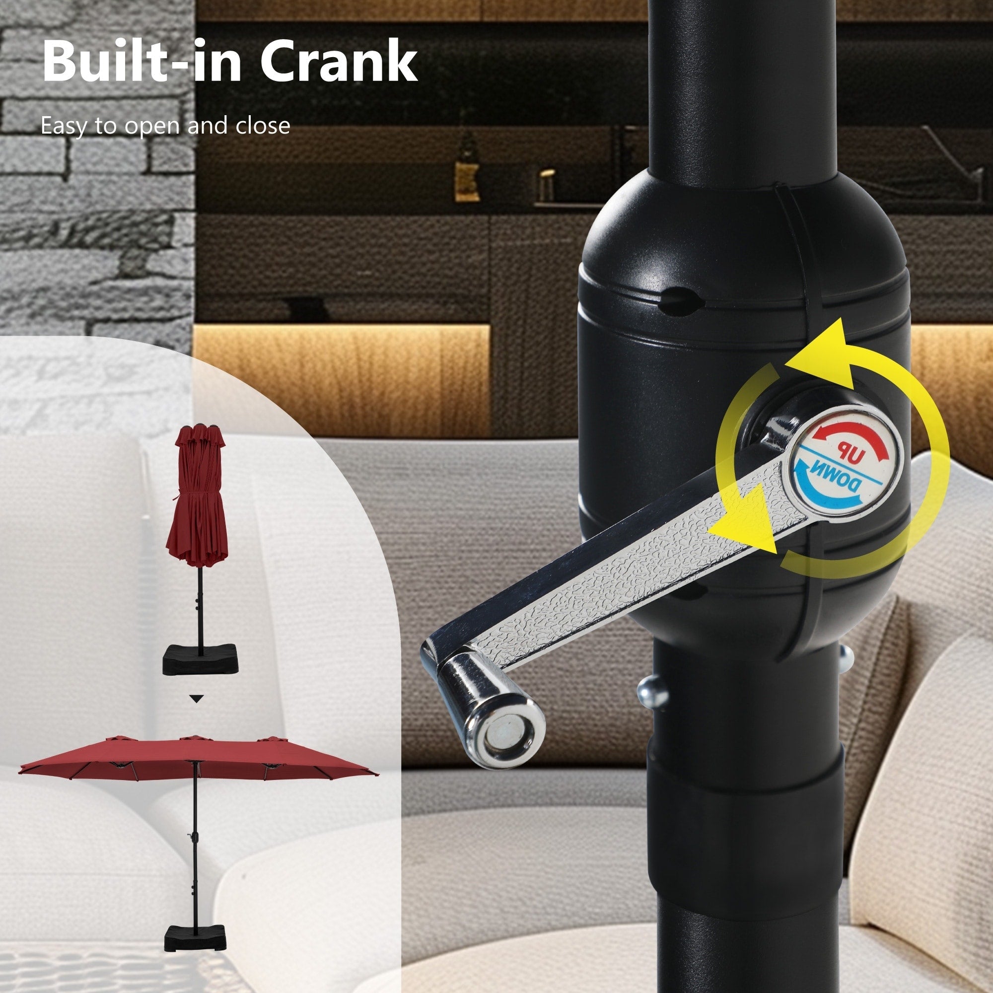 - Base de parasol incluse : Base transversale, deux sacs de sable (en tissu Oxford 300D) et une housse de protection (en polyester 160G). Poids de sable recommandé : 45 kg par sac.