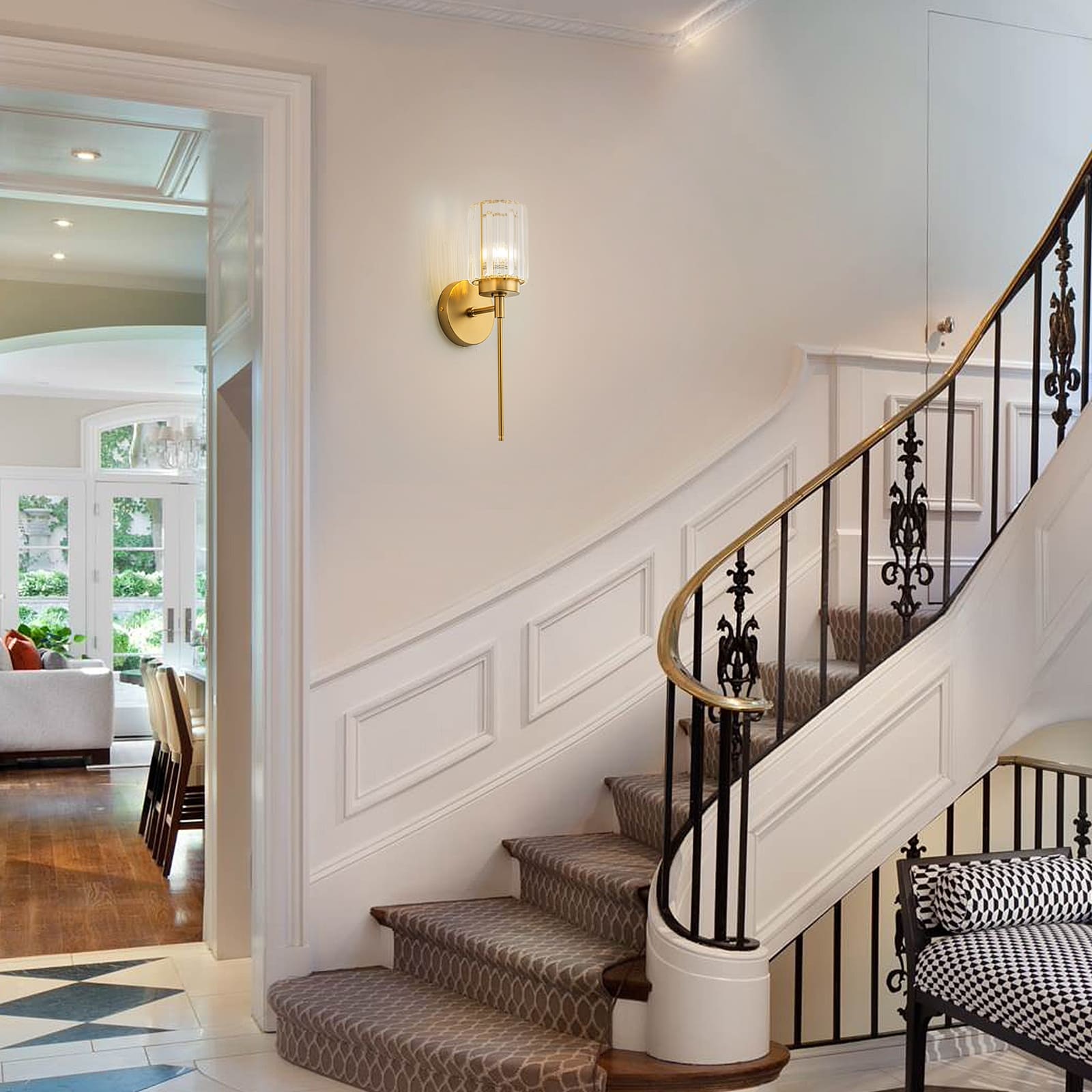 Sublimez l'élégance et le raffinement de votre salle de bain avec notre luminaire de salle de bain en cristal glamour. Ce luminaire en laiton brossé est doté d'une structure en métal robuste et d'un abat-jour en cristal taillé avec précision, garantissant durabilité et élégance intemporelle. Il rehaussera l'opulence et le raffinement de votre pièce. Des abat-jour en cristal de qualité supérieure sont suspendus à une tige métallique linéaire dorée, complétant ainsi son élégance. Chaque abat-jour cylindrique en cristal dissimule un charmant spectre de couleurs arc-en-ciel, captivant le regard même à la lumière naturelle et créant un point focal captivant pour votre miroir de salle de bain ou de dressing.