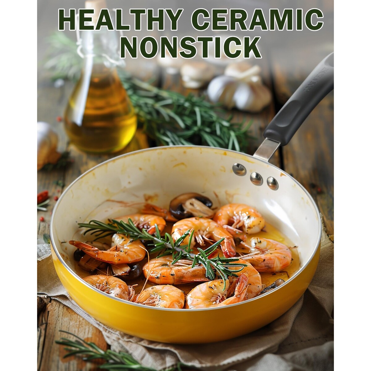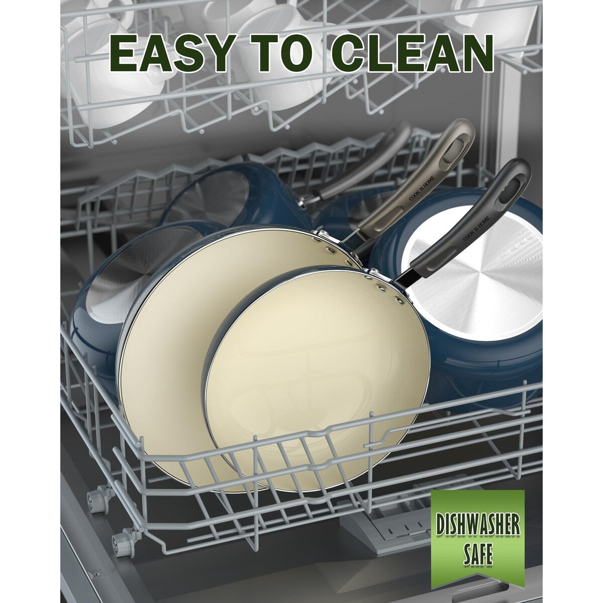 FACILE À NETTOYER - Le revêtement antiadhésif de l'ensemble de cuisson est facile à nettoyer, consomme moins d'huile et les aliments n'attachent pas au fond de la poêle, pour une cuisson plus saine. Attention : n'utilisez pas d'ustensiles métalliques ni d'objets pointus pour rayer le revêtement.