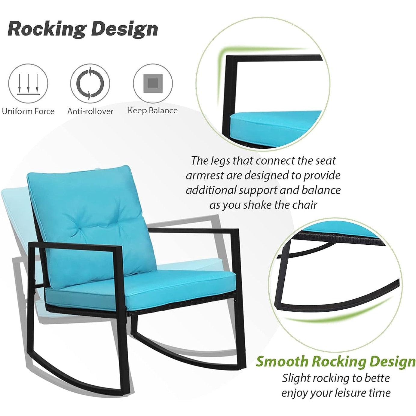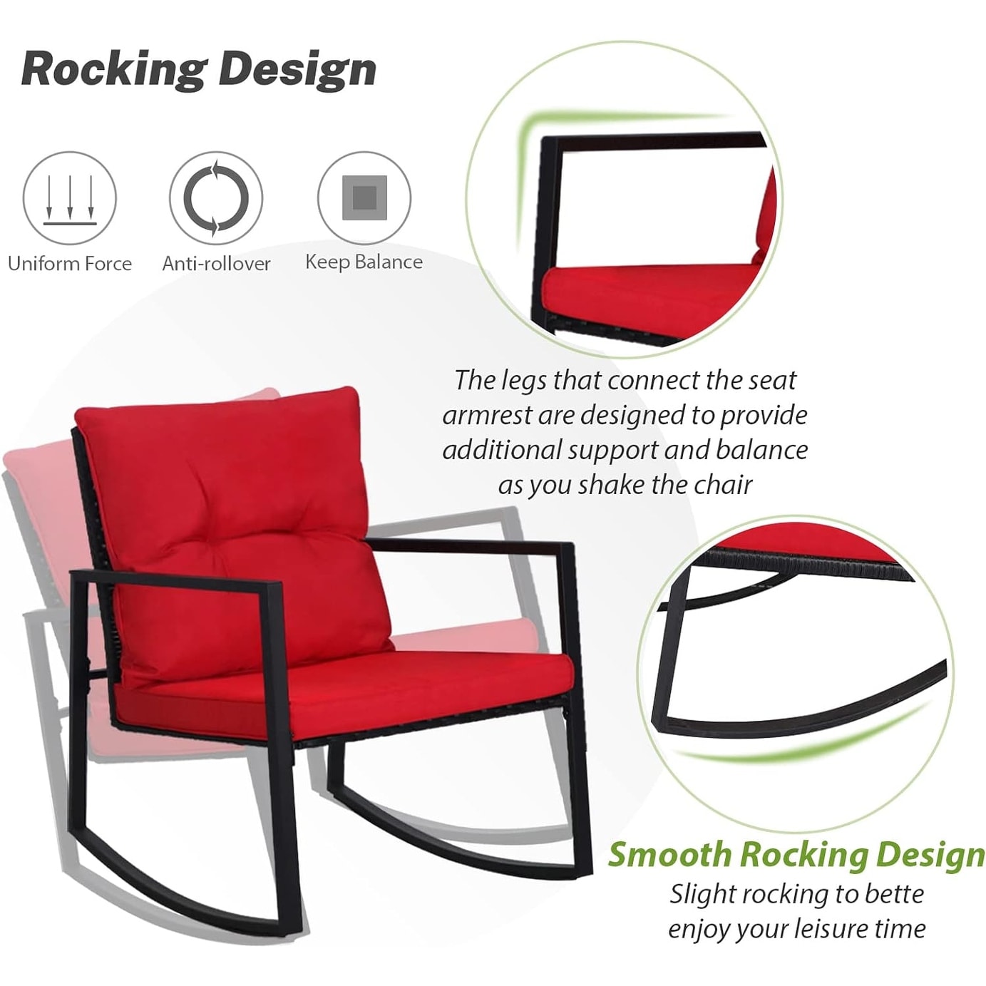 - Comprend 2 chaises à bascule et 1 table basse