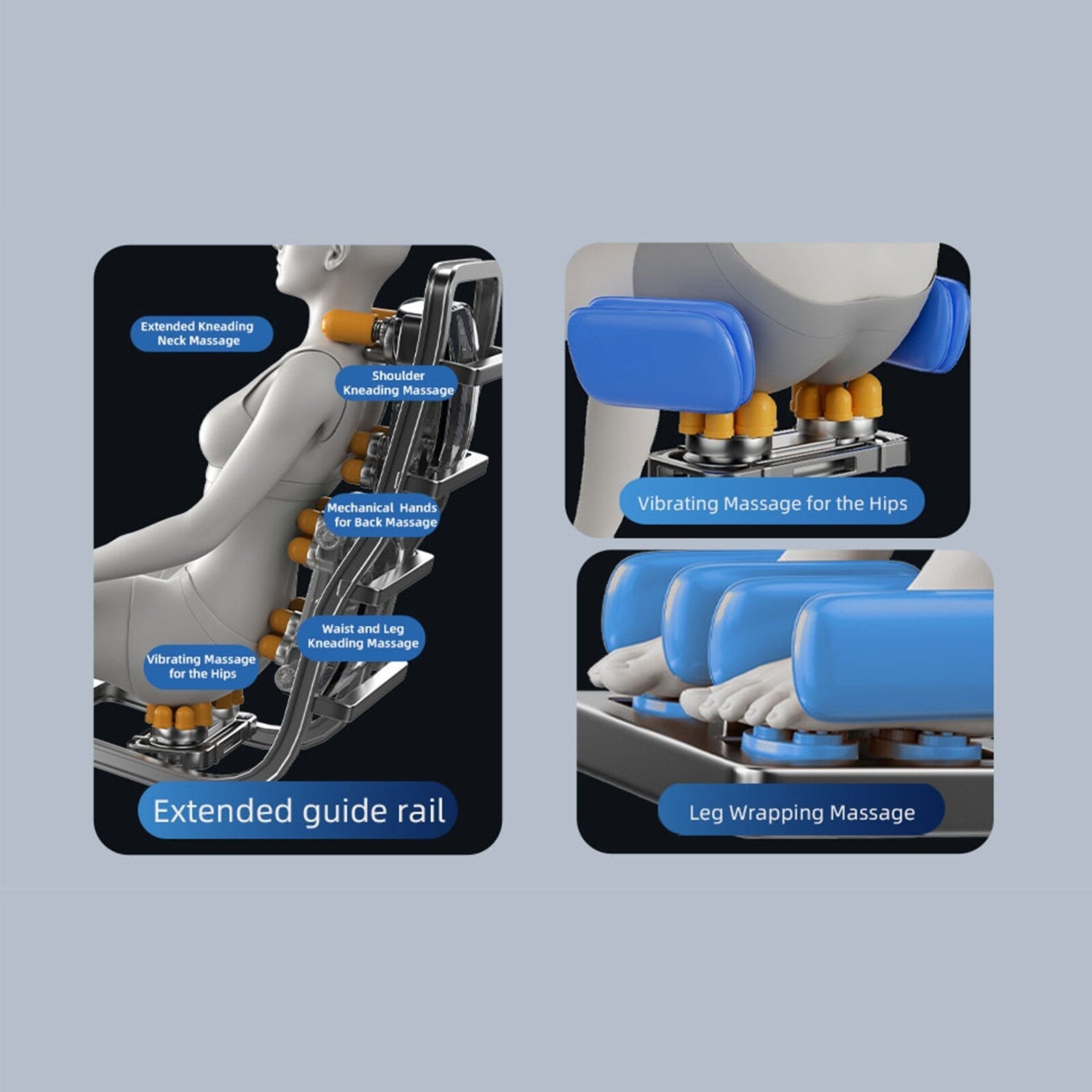 Offrez-vous une expérience de massage de qualité professionnelle à domicile grâce à ce fauteuil de massage complet à airbags . Doté de 20 airbags intelligents, de 8 rouleaux de massage fixes, d'un positionnement zéro gravité et d'une thérapie lombaire chauffante , ce fauteuil est conçu pour vous aider à vous détendre, à évacuer le stress et à améliorer votre bien-être général.